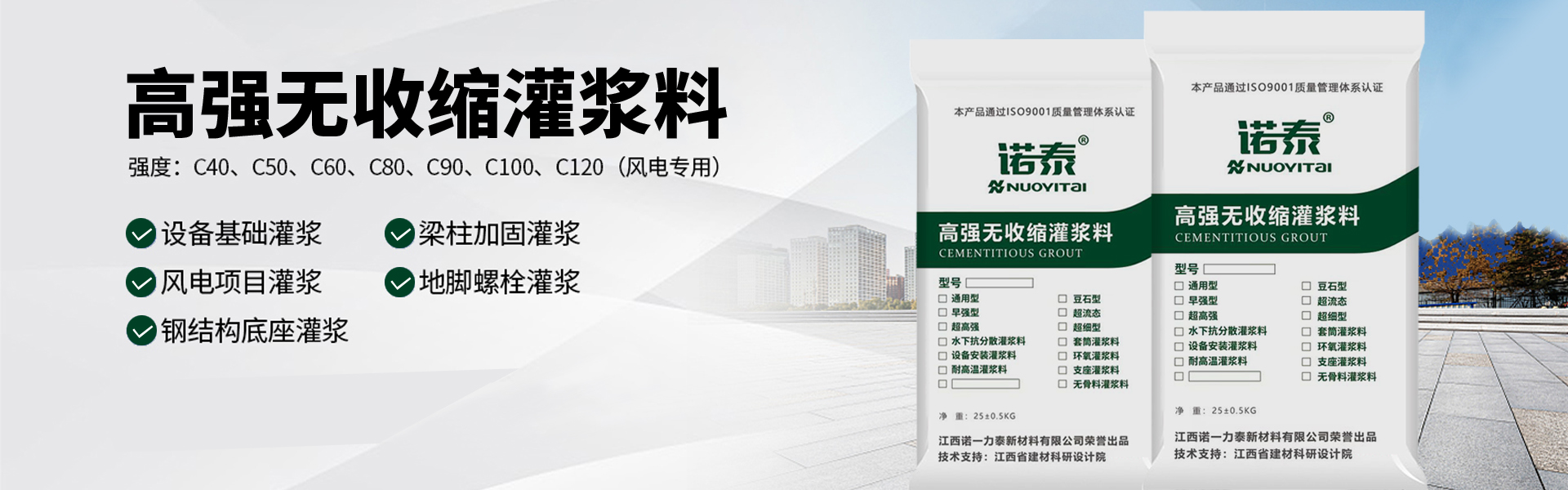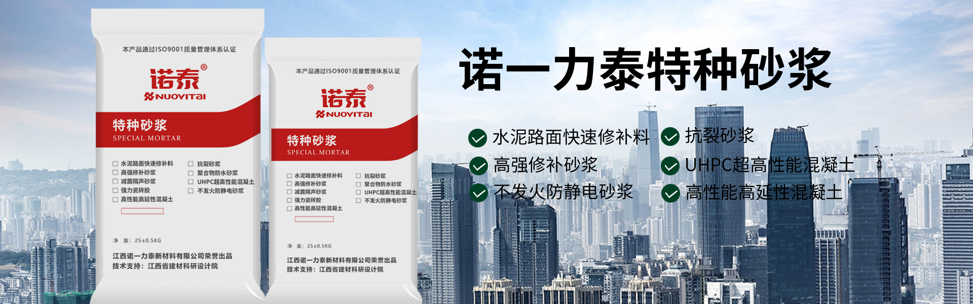 江西諾一力泰新材料有限公司位于江西宜春奉新縣,是專業從事灌漿料水泥路面修補砂漿、抗裂砂漿、防水砂漿保溫砂漿隔聲砂漿粘結砂漿等砂漿系列產品生產銷售的廠家。